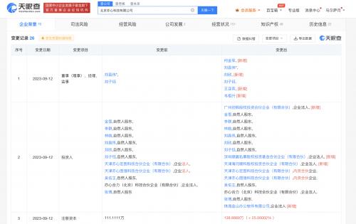 天眼查App显示,近日,悟空图像关联公司北京亦心科技有限公司发生工商变更,股东新增珠海金山办公软件有限公司,以及深圳顺赢私募股权投资基金合伙企业(有限合伙)、广州初枫股权投资合伙企业(有限合伙)、天津海河顺科股权投资合伙企业(有限合伙)3家顺为资本旗下合伙企业,同时,公司注册资本由约111.11万人民币增至约138.89万人民币。