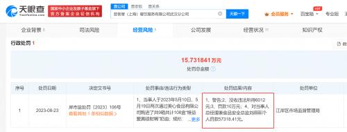 天眼查App显示,近日,网红汉堡ShakeShack关联公司昔客堡(上海)餐饮服务有限公司武汉分公司因违法从事食品生产、经营,被武汉市江岸区市场监督管理局罚款10万元、没收违法所得6012元,同时,当事人总经理兼食品安全总监刘某某被罚款5.7万余元。