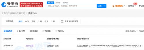 天眼查App显示,近日,上海汽车变速器有限公司发生工商变更,注册资本由约53.6亿人民币增至约61.1亿人民币。