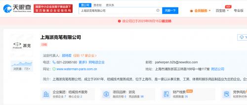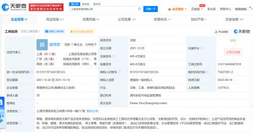 天眼查App显示,近日,上海派克笔有限公司经营状态变更为注销。该公司成立于2001年12月,法定代表人为顾琦君,注册资本465.4万美元,经营范围含钢笔、圆珠笔和其他文具产品及相关皮制品、标签机以及其他加工工具和光学测量仪及办公设备、文教用品的开发、设计等,由Newell Rubbermaid Asia Pacific Limited全资持股。