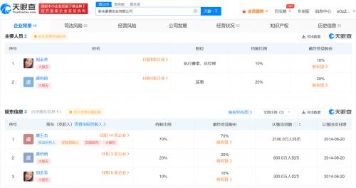 新余豪誉实业有限公司成立于2009年12月,法定代表人为刘金美(虞书欣母亲),注册资本3000万人民币,由虞丕杰(虞书欣父亲)、虞俏倩及刘金美共同持股。