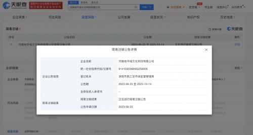 天眼查App显示,近日,河南地平线文化科技有限公司新增简易注销公告,公告期自9月25日至10月14日。