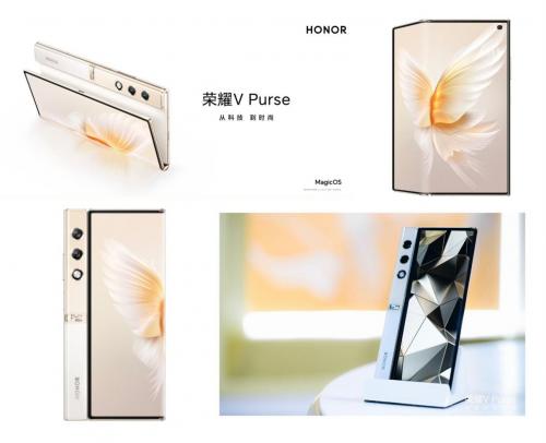 和传统的折叠屏手机不同,荣耀V Purse为消费者提供了更轻薄的使用体验。荣耀新机的整机重量仅有214克,闭合状态的厚度仅有8.6毫米,展开厚度也只有4.3毫米,刷新了市面上已有的折叠屏手机轻薄纪录。