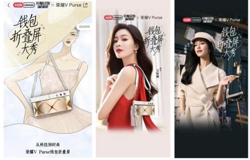 同时邀请时尚杂志主编、时尚秀评人、头部时尚博主在小红书端内发布多维内容为荣耀新机炒热关注,从荣耀V Purse的颜值搭配、轻薄手感和线下大秀等角度切入,强化了荣耀新机科技和时尚的属性,打响线上营销第一枪。