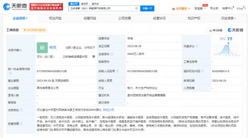 天眼查App显示,近日,三峡佳博(沧州)新能源开发有限公司成立,法定代表人为杨亮,注册资本2000万人民币,经营范围包括风力发电技术服务、太阳能发电技术服务、储能技术服务、生物质能技术服务、太阳能热发电产品销售等。股东信息显示,该公司由三峡能源(600905)、沧州佳博新能源有限公司分别持股51%、49%。
