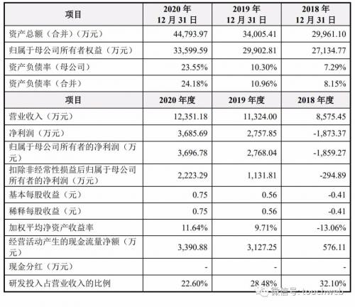 招股书显示,迈普医学2018年、2019年、2020年营收分别为8575.45万元、1.13亿元、1.24亿;净利分别为-1873万元、2757.85万元、3685.69万元。