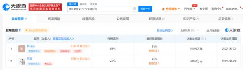 该公司成立于2019年9月,法定代表人为王团,注册资本1000万人民币,经营范围含广播电视节目的制作与发行、文艺创作与表演、演出经纪、影视经纪代理、音乐的创作、制作与发行等,由张廷芬、王源分别持股51%、49%。
