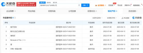 天眼查App显示,近日,王源关联公司重庆珺乔文化产业有限公司多个美术作品著作权获登记批准,包括“客厅狂欢”“我可以自己点燃火炬”“天亮一起追太阳”“海风吹”“潜”等。