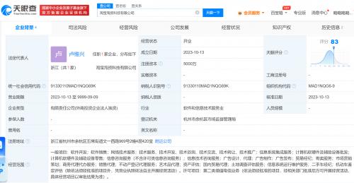 天眼查App显示,近日,淘宝淘资科技有限公司成立,法定代表人为卢维兴,注册资本5000万人民币,经营范围含软件开发、软件销售、网络技术服务、贸易经纪、寄卖服务、销售代理、市场营销策划、二手车经纪等。股东信息显示,该公司由淘宝(中国)软件有限公司全资持股。