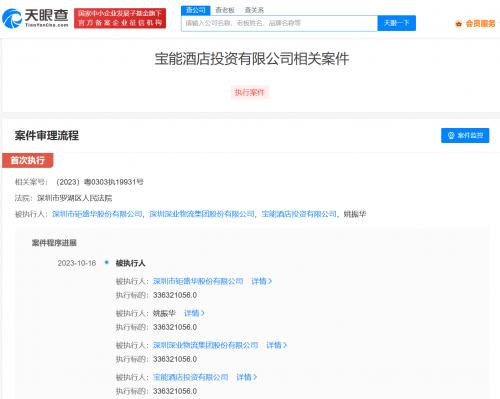 天眼查App显示,近日,姚振华及宝能集团旗下深圳市钜盛华股份有限公司、宝能酒店投资有限公司、深圳深业物流集团股份有限公司新增一则被执行人信息,执行标的3.3亿余元,执行法院为深圳市罗湖区人民法院。