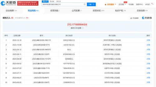风险信息显示,截至目前,深圳市钜盛华股份有限公司、深圳深业物流集团股份有限公司均已存在数十条被执行人信息,被执行总金额均已超百亿元。此外,上述两家公司还存在多条限制消费令、失信被执行人(老赖)和终本案件信息。