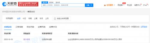 天眼查App显示,10月19日,国芯科技(688262)发生工商变更,注册资本由2.4亿人民币增至约3.36亿人民币。