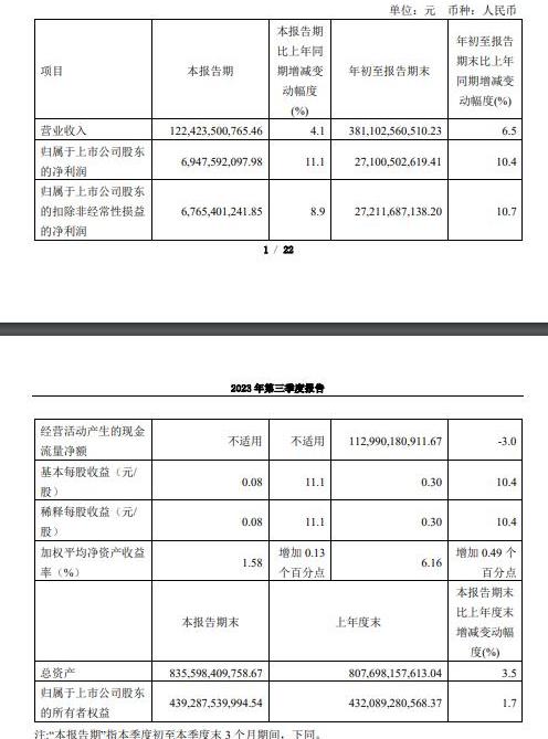 中国电信(601728)公告,第三季度实现营业收入1224.24亿元,同比增长4.1%;归属于上市公司股东的净利润69.48亿元,同比增长11.1%。前三季度净利润271亿元,同比增长10.4%。