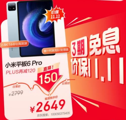 换新电脑可以提升办公学习效率,加上新的平板电脑则可以全面提升生产力。小米平板6 Pro搭载了一块2.8K分辨率高刷显示器以及骁龙8+处理器,无论显示效果还是实际性能,都能为消费者带来全新体验,今晚8点京东价仅需2649元。果粉也可以入手iPad9代,今晚8点京东价直降600元,仅需1999元即可入手。家有中小学生需要辅导,同时购买一款科大讯飞AI学习机可以事半功倍,今晚8点京东价8699元,购买还赠价值899元的讯飞翻译笔(以上产品价格以商品详情页为准)。