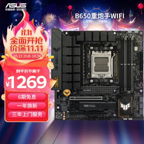 华硕B650重炮手WIFI主板采用12+2供电模组(60A),搭配8+4 Pin ProCool特质实心供电接口和更大、更厚实的VRM散热装甲,R9处理器也能轻松驾驭。提供三档性能调节(PBO增强),一键解锁温度墙,可给予更好的温度和性能表现。主板支持DDR5内存,通过AMD EXPO和AEMP,更好的释放DDR5内存潜力。板载双M.2接口,不仅均配备高效散热盔甲,可大幅降温,其中一个还支持PCIe 5.0,前瞻性支持新一代存储设备。拥有高达20Gbps的USB 3.2 Gen 2x2 Type-C及前置USB Type-C接口,可满足多种拓展需求。音频方面支持双向AI降噪和DTS音效定制,除预设的音乐、电影、游戏音效模式外,还可自定义设置,提供身临其境的震撼音效。网络方面同样板载2.5G有线网卡和WiFi 6无线网卡,可为玩家带来流畅、低延迟的网络体验。主板还搭载了M.2便捷卡扣和Q-LED故障诊断灯,可进一步简化装机流程。支持AURA SYNC神光同步,板载第二代可编程灯效接针,可与相兼容设备实现灯效联动,轻松打造个性氛围空间。该主板到手价1269元,可享6期免息福利。