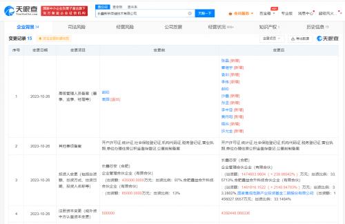 天眼查App显示,近日,长鑫新桥存储技术有限公司发生工商变更,新增国家集成电路产业投资基金二期股份有限公司为股东,注册资本由50亿人民币增至约439亿人民币,同时新增多位主要人员。