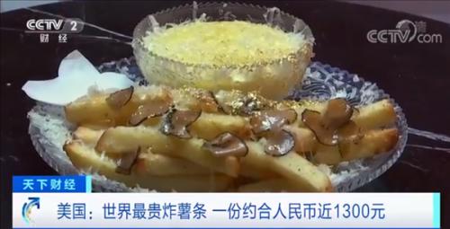 近日,美国纽约一家餐厅推出了一道售价为200美元的炸薯条,约合人民币1297元,并获得吉尼斯世界纪录认证,成为世界上最贵的炸薯条。