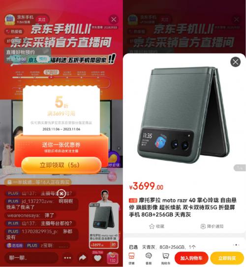 体验折叠屏可以从moto razr 40入手,其轻至188.6g,薄约7.35mm,轻巧好拿。moto razr 40搭载6400万旗舰影像,支持自由悬停拍摄,解锁更多拍照角度。moto razr 40 8+256GB版京东采销直播可抢五折优惠券,券后到手价1849.5元。