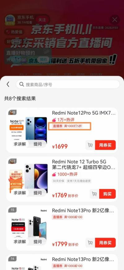京东11.11正在火热进行中,为给消费者带来更多好物福利,11月6日京东采销直播带来小米、荣耀、华为、OPPO、vivo、三星、魅族等大牌手机,并针对超多款旗舰爆款手机推出五折优惠券以及手机抽奖活动,让用户获得“真便宜,真五折”的购物体验。得益于京东采销直播的优惠力度与京东贴心的服务保障,超多消费者涌入直播间抢购自己心仪的产品。