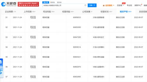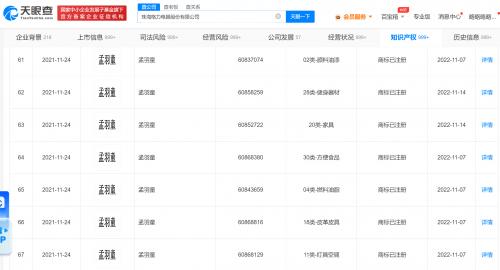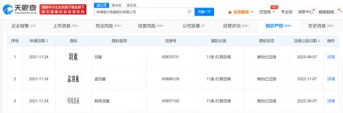 天眼查App显示,格力电器(000651)曾于2021年申请注册多个“孟羽童”“羽童”“明珠羽童”商标,国际分类包括运输工具、日化用品、灯具空调等,目前多数商标状态为已注册。