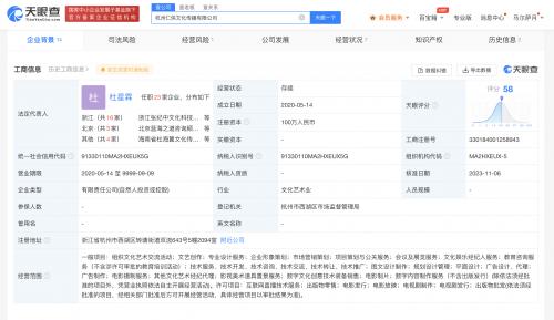杭州仁侠文化传播有限公司成立于2020年5月,法定代表人为杜星霖,注册资本100万人民币,目前,该公司由杜星霖、杜晶晶分别持股95%、5%,张纪中任监事职务。