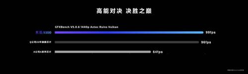 在最为检验GPU性能的GFXBench测试中,天玑9300的Aztec 1440P测项成绩竟然高达99帧,处于目前的旗舰巅峰水平。而在曼哈顿3.1测项中,天玑9300更是一骑绝尘,以344帧的惊人成绩领先友商23%以上,远远超过同代旗舰产品,是目前妥妥的GPU性能第一!