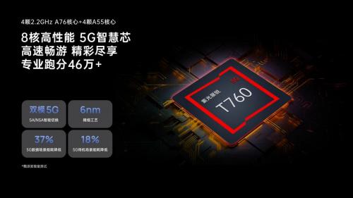在硬件配置方面,酷派大观Y60Lite采用了紫光展锐新一代6nm先进制程EUV工艺的T760八核5G芯片平台,该芯片拥有4颗2.2GHz A76核心和4颗A55核心,多模融合的创新架构和AI智能调节加持下,在实现2G / 3G / 4G / 5G的全覆盖上,相比上一代产品整体功耗降低了约37%,续航能力提升30%,根据酷派实验室提供的数据,在COOL OS3.0系统深度优化的基础,安兔兔专业跑分46万分以上,真正做到了性能和功耗的双平衡。