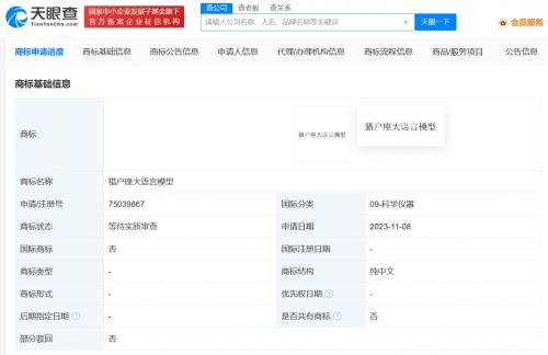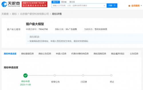 天眼查App显示,近日,北京猎户星空科技有限公司申请注册“猎户座大语言模型”“猎户座大模型”商标,国际分类为广告销售、科学仪器、网站服务,当前商标状态均为等待实质审查。据悉,猎户星空是由猎豹移动投资的人工智能机器人服务型解决方案提供商。