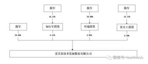 简军还持有知行军投资管理44.33%股权,持有丹瑞投资50%股权,及持有客至上投资42.31%股权。简军一共持股约38%。