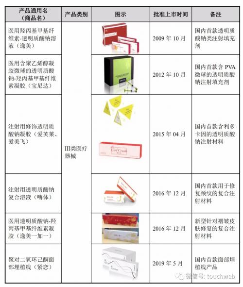 爱美客主要产品为:Ⅲ类医疗器械系列注射用透明质酸钠产品、面部埋植线产品、衍生的品牌矩阵“伴侣型”化妆品。