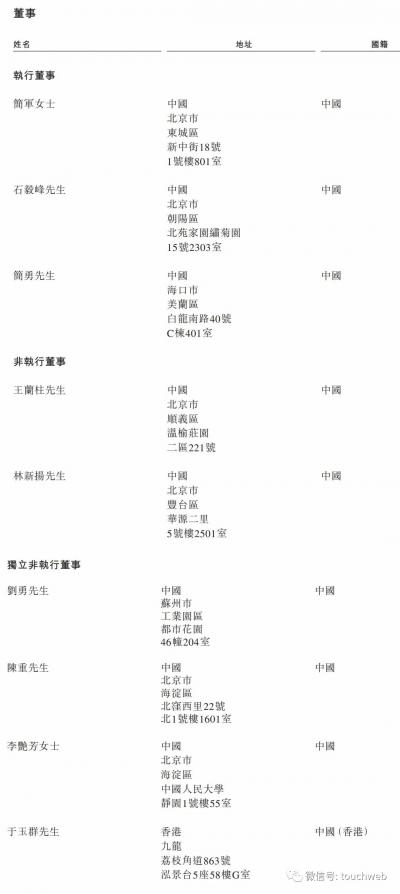 爱美客执行董事为简军女士、石毅峰、简勇;非执行董事为王兰柱、林新扬;独立非执行董事为刘勇、陈重、李艷芳、于玉群。