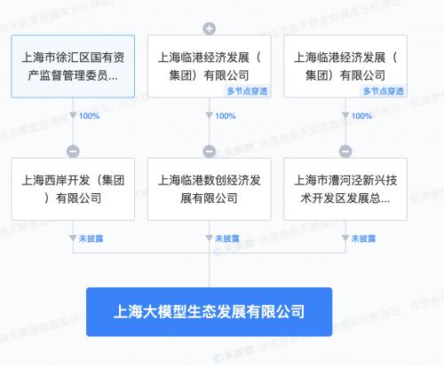天眼查App显示,近日,上海大模型生态发展有限公司成立,法定代表人为干瑾,注册资本1亿人民币,经营范围含创业空间服务、人工智能双创服务平台、社会经济咨询服务、企业管理咨询、信息咨询服务等。股权全景穿透图显示,该公司由上海西岸开发(集团)有限公司与临港集团旗下上海临港数创经济发展有限公司、上海市漕河泾新兴技术开发区发展总公司共同持股。