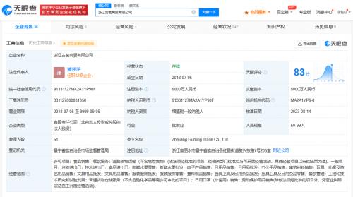 该公司成立于2018年7月,法定代表人为潘萍萍,注册资本5000万人民币,经营范围包括餐饮服务、食品进出口、新鲜水果零售、电子产品销售、日用品销售、工程和技术研究和试验发展等。股东信息显示,该公司由古茗科技集团有限公司全资持股。