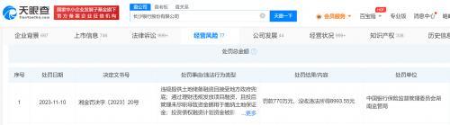 天眼查App显示,近日,长沙银行(601577)因违反银行业监督管理法、商业银行法,被中国银行保险监督管理委员会湖南监管局罚款770万元、没收违法所得8993.55元。