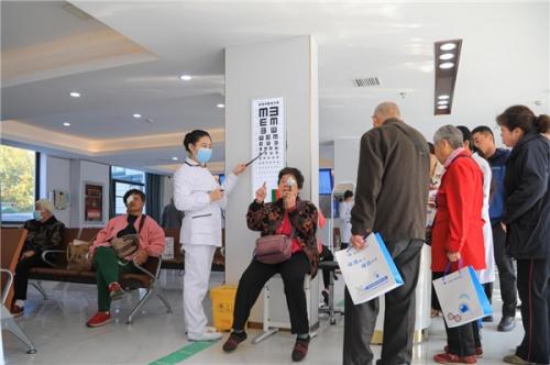 活动现场,前来就诊的居民络绎不绝,大家有序排队候诊,医护人员为前来检查的居民登记信息,先为他们检测视力,再由医务人员及导诊人员指引居民有序进行各项体检,实行“一站式陪诊服务”。