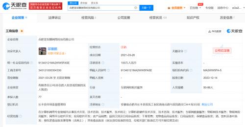 天眼查App显示,近日,合肥菜划算网络科技有限公司经营状态由存续变更为注销。该公司成立于2021年3月,法定代表人为邬蕾鹏,注册资本100万人民币,经营范围含互联网数据服务、物联网技术服务、农产品销售、日用品批发、预包装食品批发兼零售、其他食品批发等,由杭州菜划算网络科技有限公司全资持股。