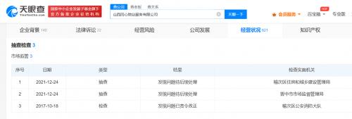 天眼查App显示,涉事小区物业公司山西同心物业服务有限公司成立于2012年3月,法定代表人、执行董事兼总经理为吴云仙,注册资本300万人民币,经营范围含物业管理、物业服务、房屋场地租赁、停车服务、园林绿化工程等,由吴云仙、史超、山西晋建集团有限公司等共同持股。抽查信息显示,该公司在当地组织的多次抽检中被发现问题。