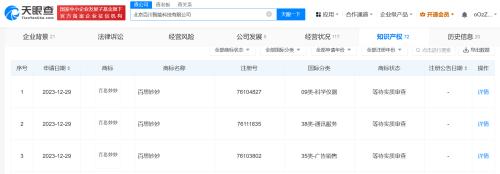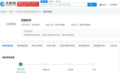 天眼查App显示,近日,北京百川智能科技有限公司申请注册多枚“百思妙妙”商标,国际分类为科学仪器、通讯服务、广告销售,当前商标状态均为等待实质审查。此前,该公司曾申请“百小应”“百川百应”“百川先知”等商标,其中部分商标已注册成功。