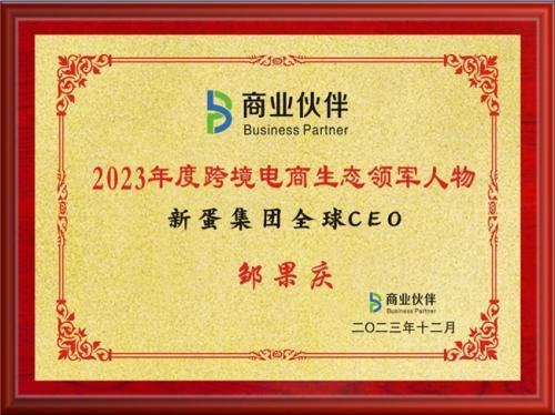 近日,在BP商业伙伴举办的2023年度评选活动中,新蛋集团全球CEO邹果庆凭借卓越的领导力、洞见,以及丰富的电商运营管理经验,荣获“2023年度跨境电商生态领军人物”称号。这既是对他在过去一年来为推动国内电商生态发展所做贡献的充分肯定,也是对其带领下企业持续发展的褒奖。