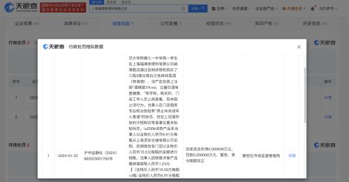 天眼查App显示,近日,全家FamilyMart关联公司上海福满家便利有限公司因向未成年人售酒,被静安区市场监督管理局罚款2000元。