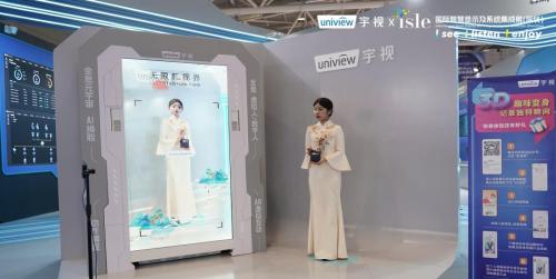 3D互动屏呈现超薄边框,4K高清透明液晶触摸屏,配置4K高清摄像头和2.1声道音响,通过实时视讯软件和光学动作捕捉技术应用,实时生成全息影像,通过AIGC的技术应用可以实现AI数字人、AI特效等功能,给用户提供沉浸式虚拟互动体验。