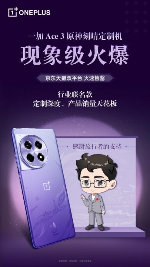 一加Ace 3原神刻晴定制机首批现已售罄,一加Ace 3仍在火爆热销中。用户可在OPPO商城、京东、天猫、拼多多、抖音等渠道购买。更多关于「性能手机新标杆」一加Ace 3的信息,欢迎关注一加官网、一加手机官方微博等官方平台。