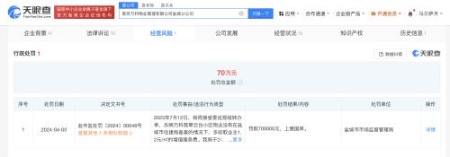 此外,近日,南京万科物业管理有限公司盐城分公司因擅自制定属于政府指导价范围内的前期物业公共服务收费标准,多收取业主1.2元/㎡的增值服务费,被盐城市市场监督管理局罚款70万元。