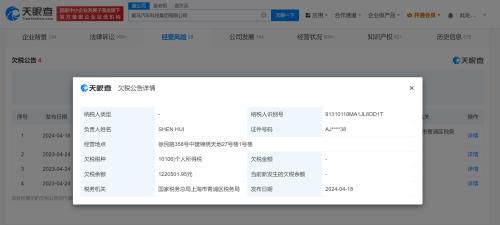 天眼查经营风险信息显示,近日,威马汽车科技集团有限公司新增一则欠税公告,欠税税种为个人所得税,欠税余额122万余元。