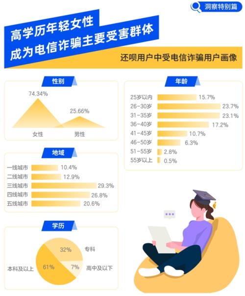 但与此同时,高学历年轻群体也是电信诈骗的高发群体。一方面,长期相对封闭的学习环境,让其难以识别日益更新的诈骗手段;另一方面,部分年轻受害者低估电诈分子的手段并抱有侥幸心理,认为自己能够在电诈骗局中返本抽身。