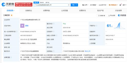天眼查App显示,近日,广州众合顺益营销服务有限公司成立,法定代表人为唐峰,注册资本200万人民币,经营范围含食品销售、食品互联网销售、广告制作等。股东信息显示,该公司由香飘飘(603711)全资持股。