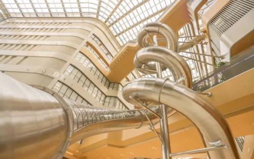 整个园区从“芯片线路”中汲取设计灵感,仿照电路脉络构建景观和轴带系统,将企业园区融入城市肌理。新园区吸引大量关注,园区内还有四层楼高的大滑梯。有网友表示很想去亲自体验一下。