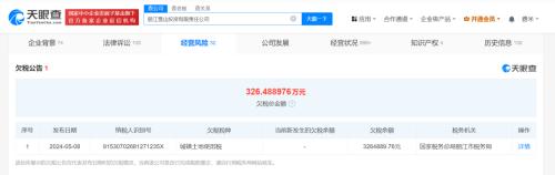 天眼查经营风险信息显示,近日,丽江雪山投资有限责任公司新增一则欠税公告,欠税税种为城镇土地使用税,欠税金额为326万余元。
