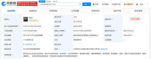 天眼查App显示,近日,上海昕美影视文化工作室企业状态由存续变更为注销。该工作室成立于2017年6月,为唐艺昕(唐婷)个人独资企业,出资额50万人民币,经营范围含影视文化艺术活动交流策划、舞台艺术造型策划、文学创作、企业营销策划、展览展示服务、摄影摄像服务等。
