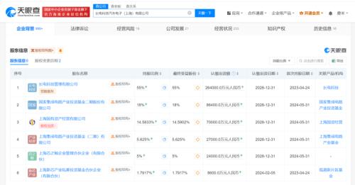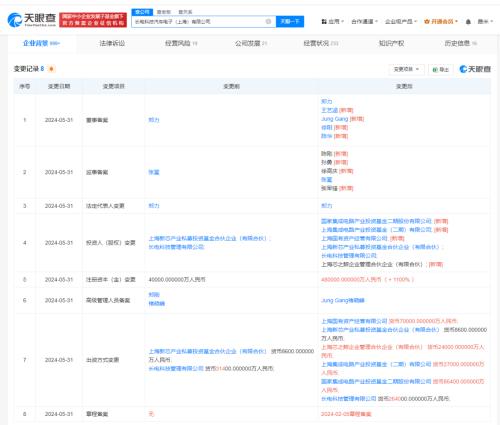 天眼查App显示,近日,长电科技汽车电子(上海)有限公司发生工商变更,股东新增国家集成电路产业投资基金二期股份有限公司、上海集成电路产业投资基金(二期)有限公司、上海国有资产经营有限公司、上海芯之鲸企业管理合伙企业(有限合伙),同时,公司注册资本由4亿人民币增至48亿人民币,并新增多位董事和监事。